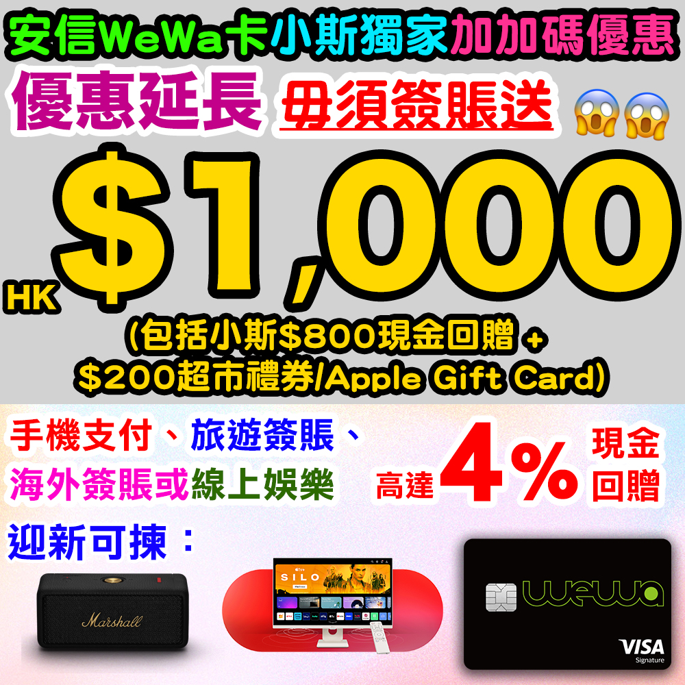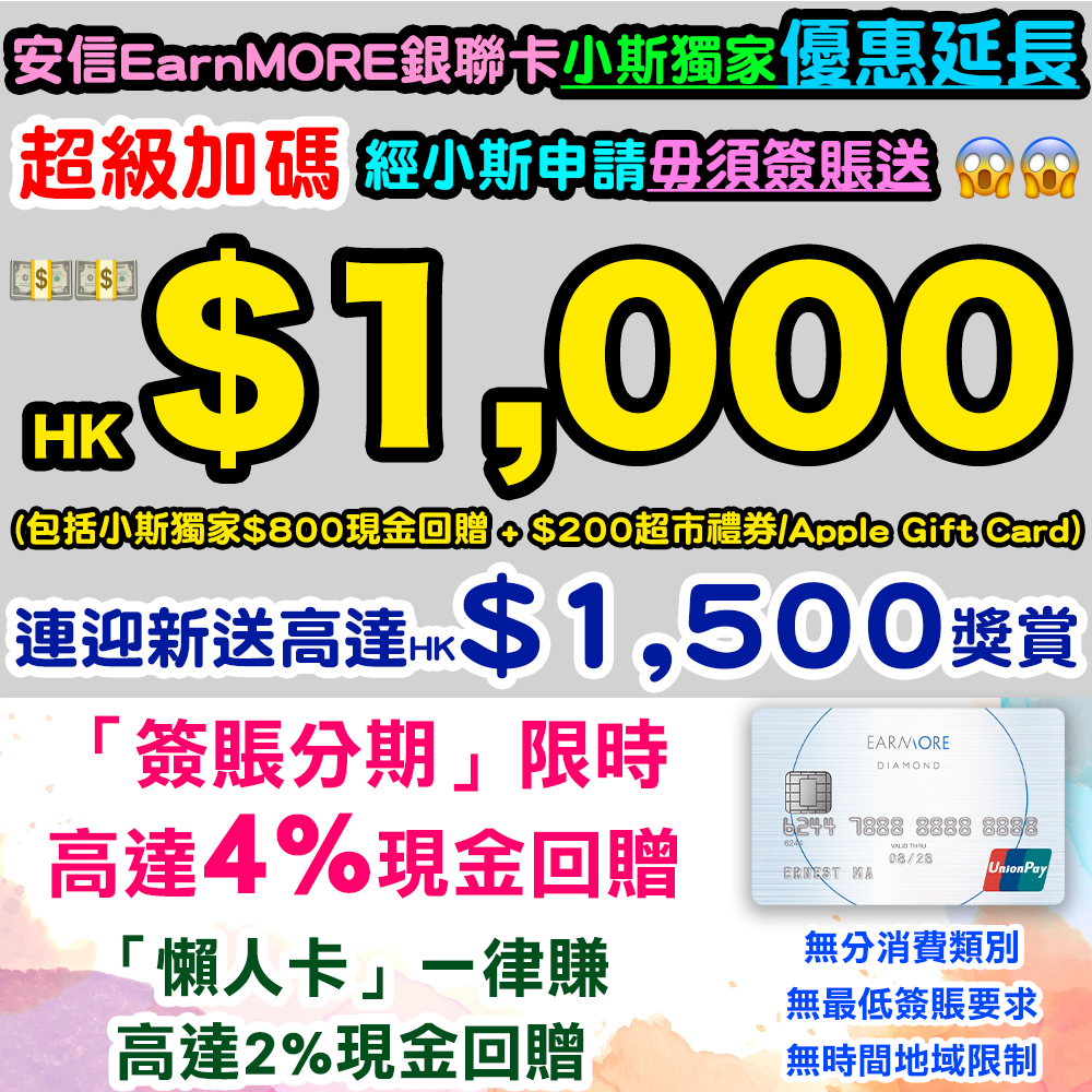 🎁 2026年2月2日至2月25日,經小斯成功申請兼完成首次簽賬有額外HK$2,500簽賬回贈