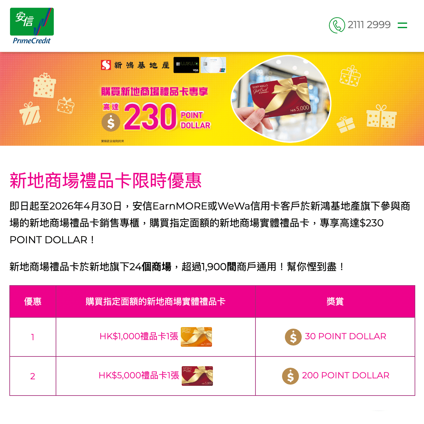 安信信用卡新地商場禮品卡優惠