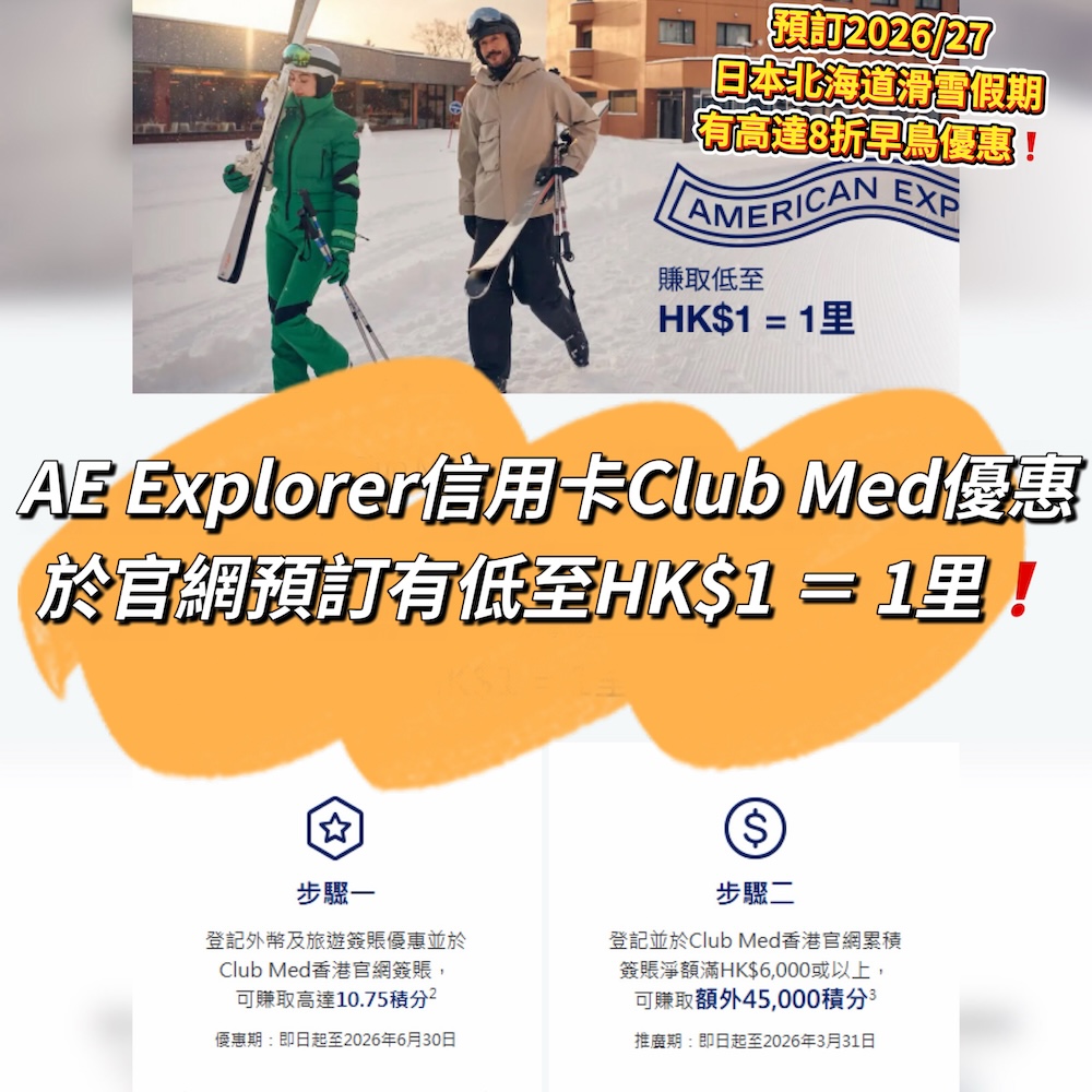 ✅ 新客迎新 1,100,000積分都可以直接兌換做Pay with Points抵銷簽賬,有高達HK$3,666回贈,即刻回返2/3年費!舊客迎新810,000積分換做Pay with Points抵銷高達HK$2,700簽賬! 大家再登記埋AMEX Travel Online旅遊禮遇,透過AMEX Travel Online平台預訂和預付酒店和汽車租賃2026上半年就可以有高達HK$1,100簽賬回贈 (登記方法及詳情:bit.ly/46BHWCP)