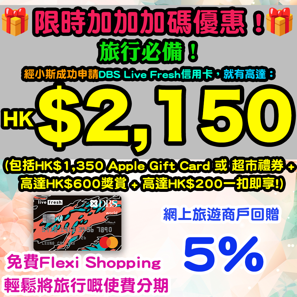 ✅ 首3個月內簽賬滿HK$50,000 (連同上面個HK$15,000),再有額外600,000積分 (可兌換33,333里數)