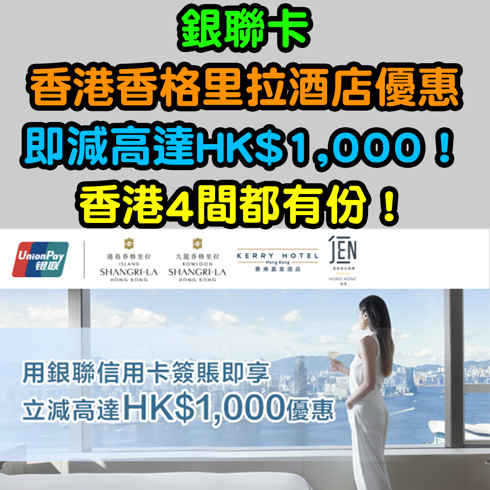 有時唔想飛,留番係香港staycation都幾好!如果想高級D住下shangri-la,記得要用埋銀聯卡啦!有優惠啊,由2025年11月7日至12月31日: