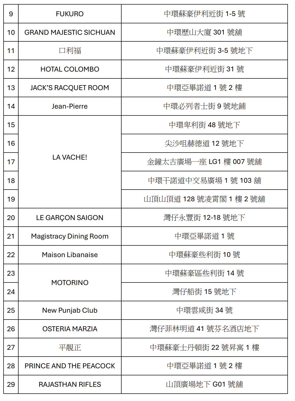 5. 參與餐廳名單如下: