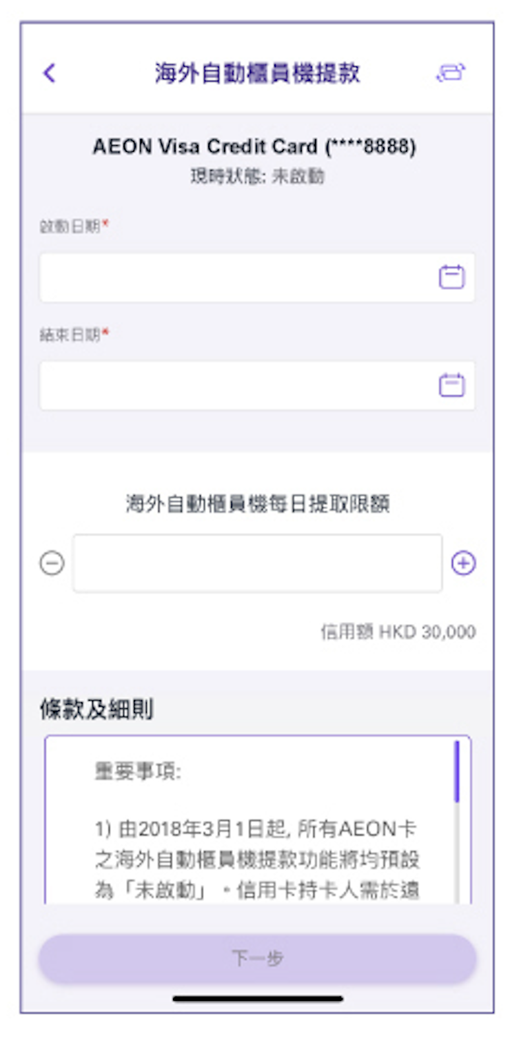 AEON信用卡如何啟動「海外自動櫃員機提款」功能