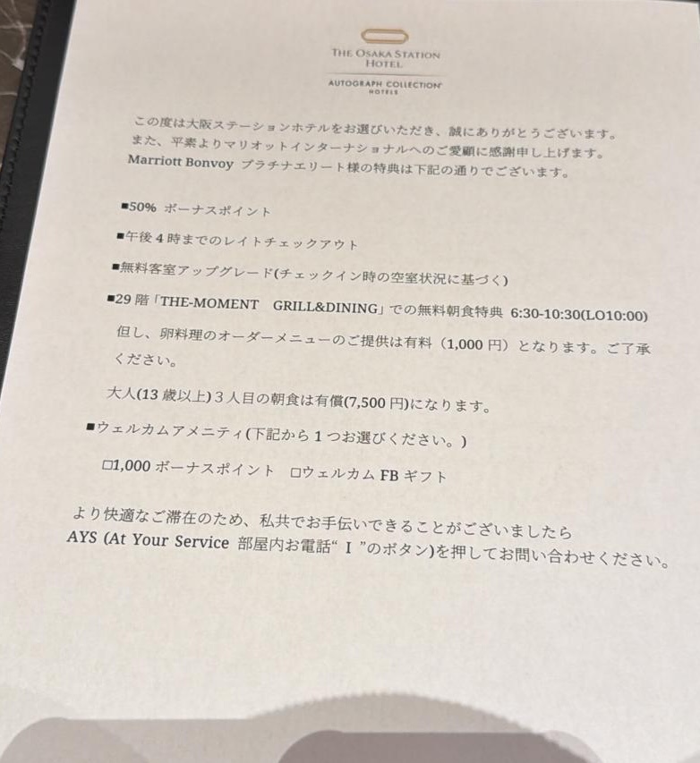 白金會員除咗有 50% point、額外1,000積分、4pm check out同聲稱會upgrade外,仲會送29樓The Moment既早餐,雖然要加1,000yen先有蛋料理同氣泡酒,但個早餐仲係好癲好多野食!