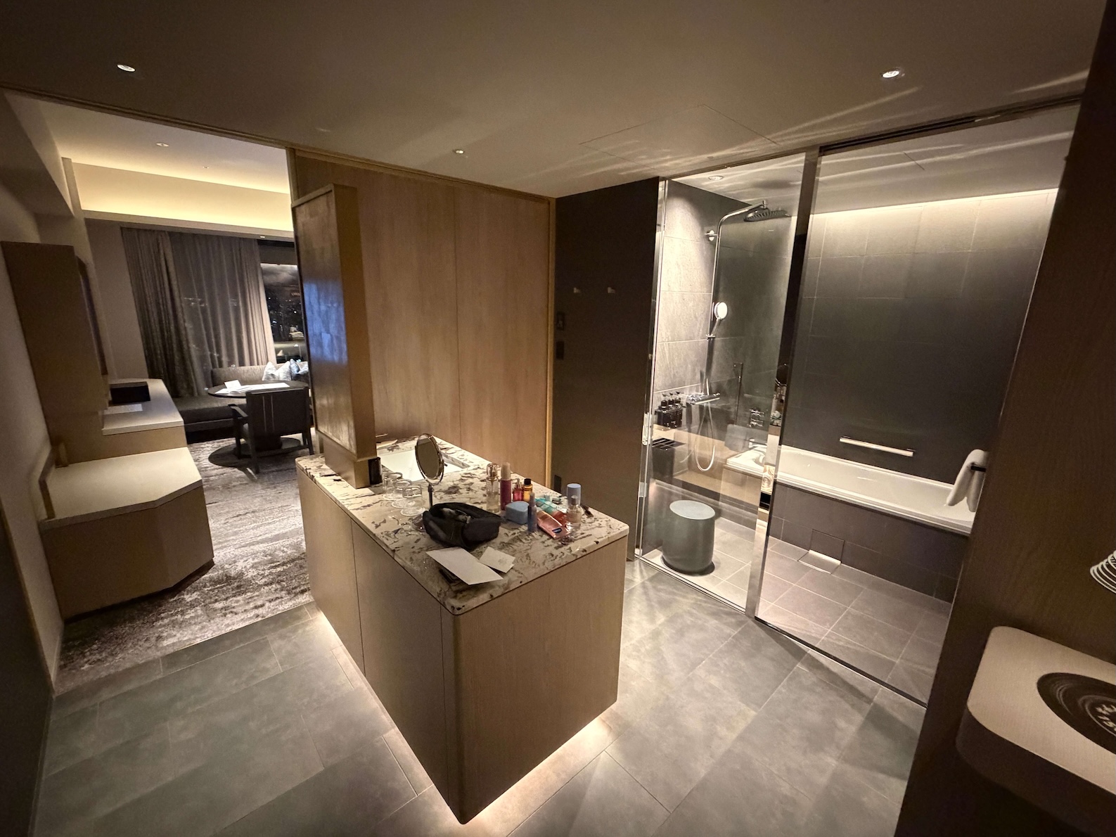 可能因為我宜家得白金卡,所以可以話完全無upgrade >< 但其實本身間房都已經夠大既,基本門又已經有3浴缸!一入門口就係一個開放式既洗面台和盥洗空間,大理石既巨大洗面台好有高級感!同埋佢係乾濕分離,廁所浴缸分開既設計,仲有提供兩包浴鹽!
