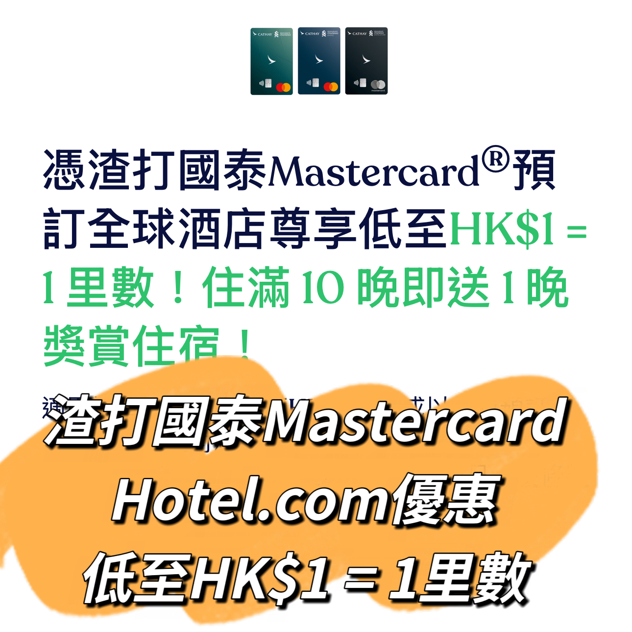 記得要用渣打國泰Mastercard去Hotel.com訂酒店啦!賺盡低至HK$1=1里!