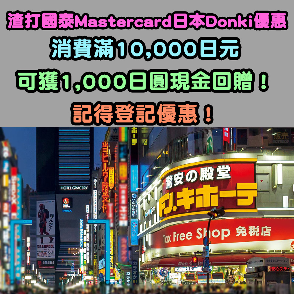 【渣打國泰Mastercard®日本Donki優惠】買滿10,000日圓有1,000日圓回贈!
