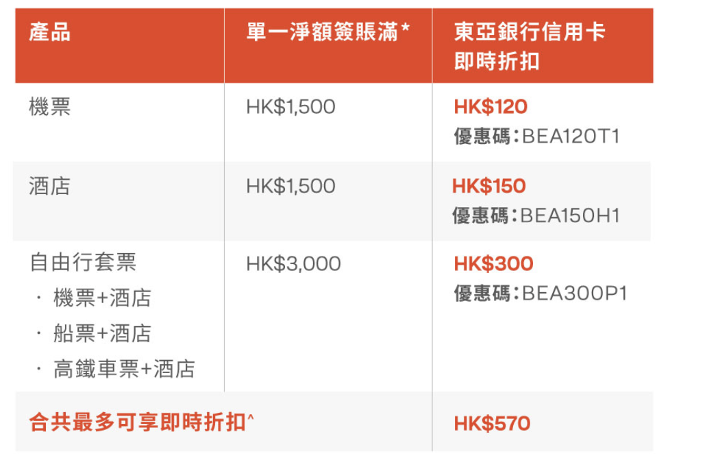 【東亞信用卡X永安旅遊】訂酒店、機票、自由行套票高達HK$570折扣!
