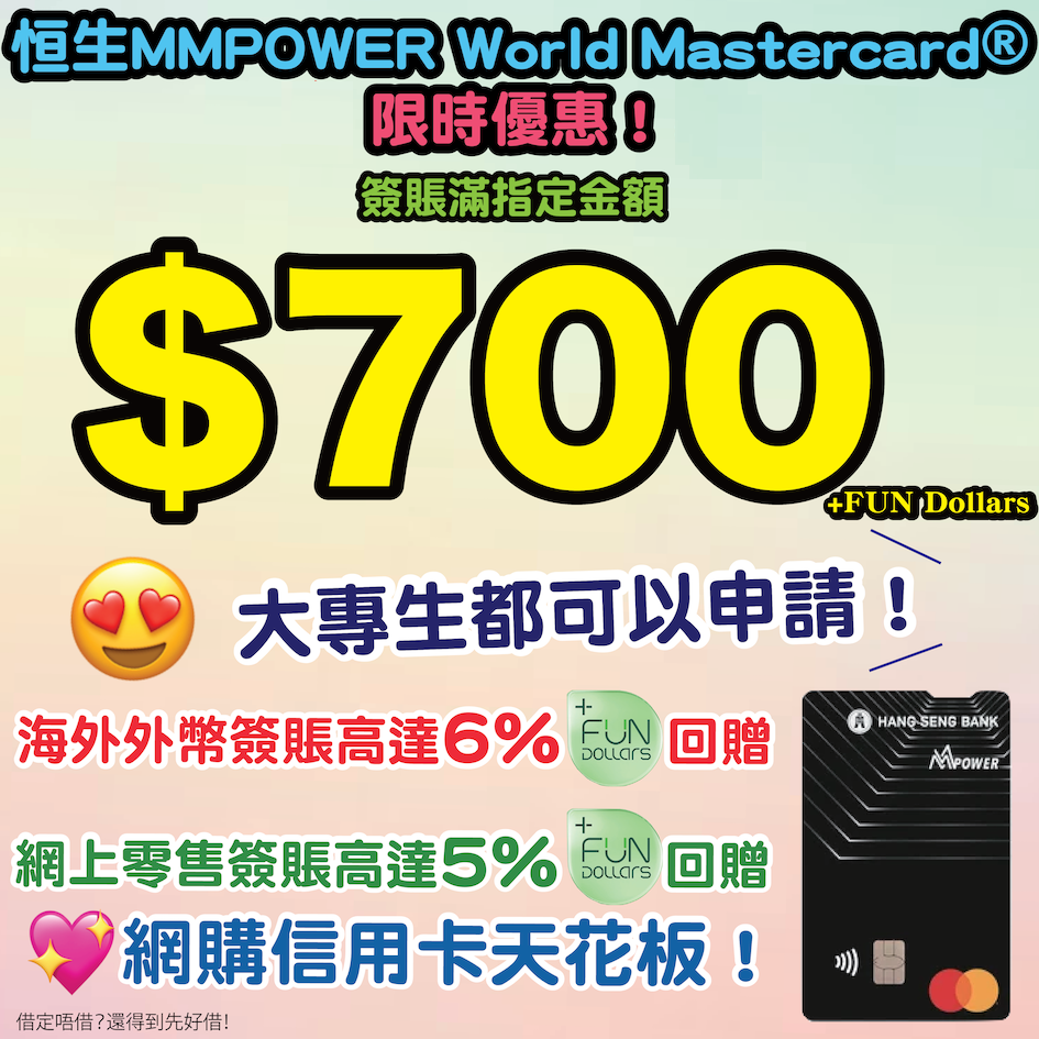 恒生MMPOWER World Mastercard +FUN Dollars獎賞計劃