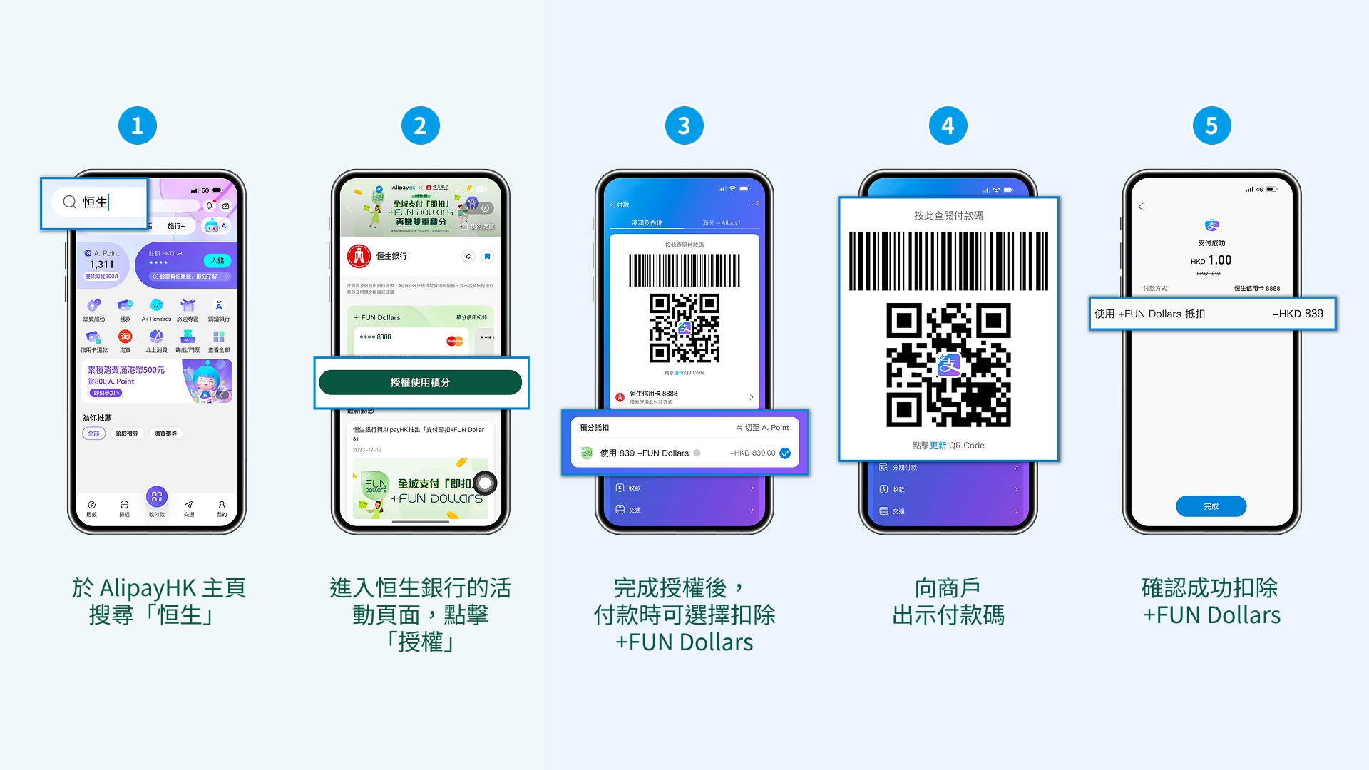 - 由即日起至2026年4月15日,新客戶成功於AlipayHK連結合資格恒生信用卡後,授權使用+FUN Dollars抵銷簽賬,仲可領合共港幣40禮券!