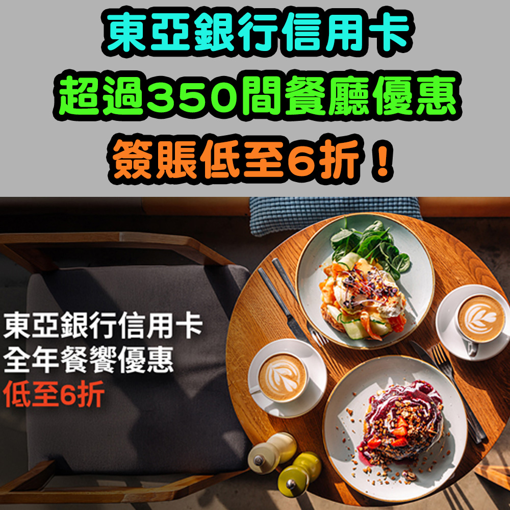 東亞信用卡今次又有餐飲優惠啦!仲要有成350個飲食熱點!依家由2025年1月1日至2025年12月31日,憑東亞信用卡去指定飲食熱點,享低至六折優惠!