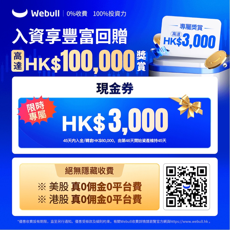【開戶享高達HK$100,000獎賞】入金或轉倉嚟Webull 證券,享高達HK$100,000獎賞*!