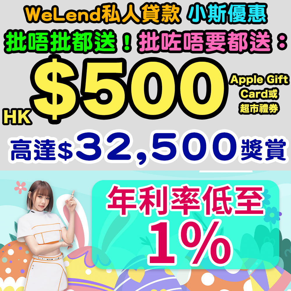 WeLend 私人貸款小斯優惠!又係時候要準備復活節旅行,新年既洗費又大,好大壓力啊!可以經小斯申請WeLend私人貸款,即有$500 Apple Gift Card或 超市禮券!批同唔批都有!批咗唔要都有!由WeLend直接送出!超癲呀!經小斯成功申請WeLend 私人貸款仲有高達HK$32,500獎賞!