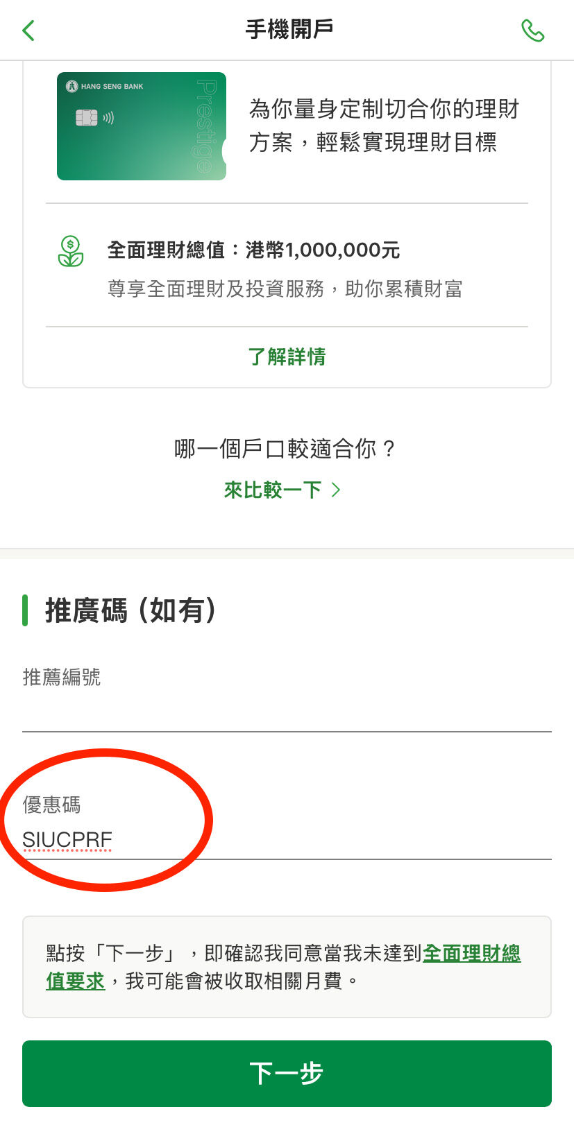 剛才用你個優惠碼開preferred banking