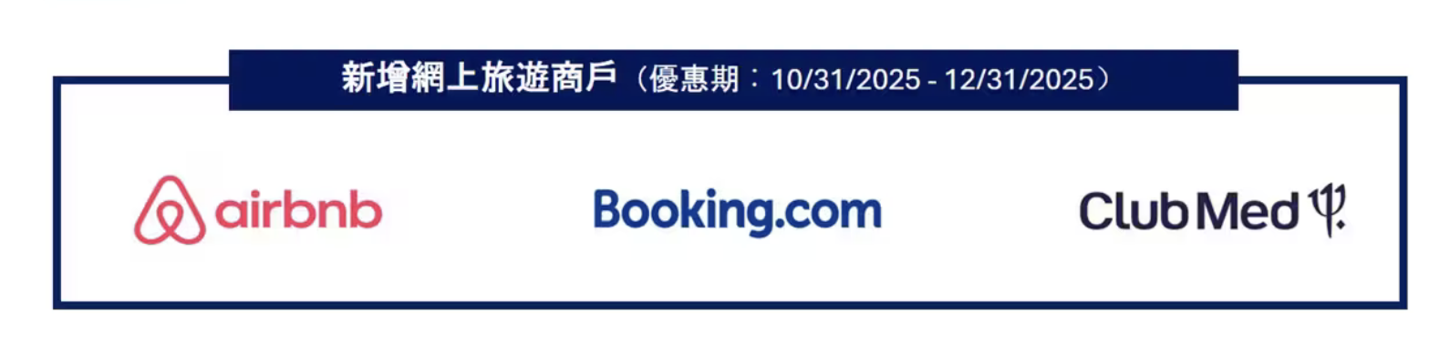 21. 指定網上旅遊商戶額外積分適用於以下簽賬: