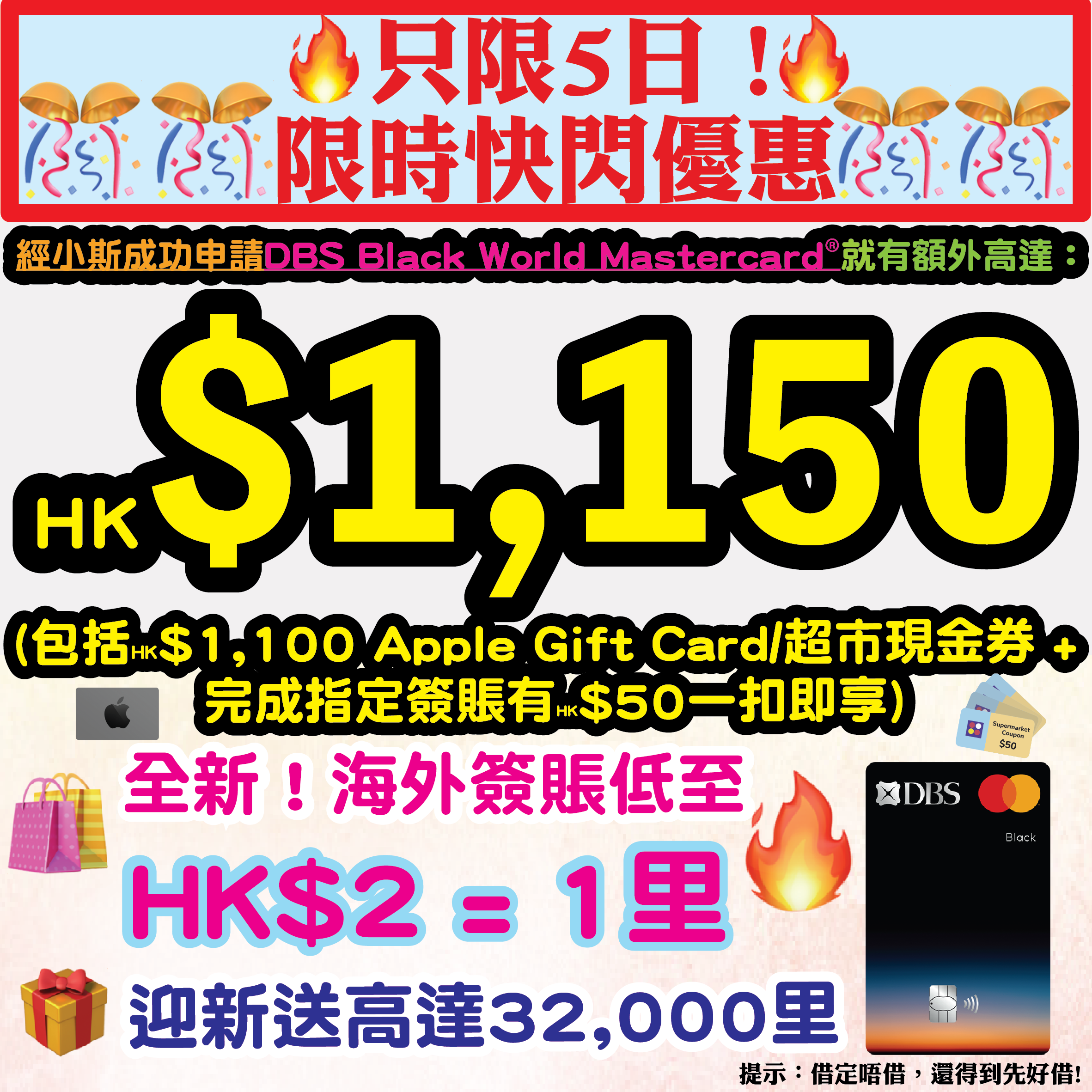 🎁 只要喺2025年10月1日至10月15日,經小斯成功申請美國運通白金卡就有: