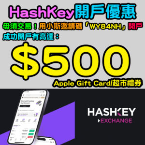 【HashKey小斯獨家開戶優惠】毋須交易!開戶就有$500 Apple Gift Card/超市禮券!