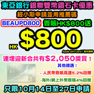東亞銀行銀聯雙幣鑽石信用卡小斯優惠 終於都有東亞銀行銀聯雙幣鑽石信用卡小斯獨家優惠!迎新有高達$2,050獎賞 …