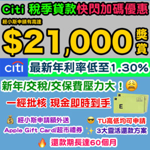Citi低息私人貸款 最後機會!新年到啦,又洗一大筆錢!Citi 稅季貸款有「3大靈活還款方案」,還款期有得畀 …