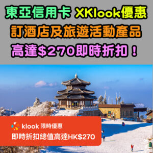 【東亞信用卡XKlook優惠】訂酒店及全球旅遊產品,高達$270即時折扣!