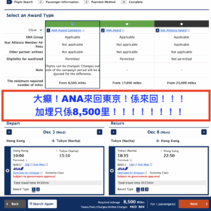 【ANA全日空里數兌換優惠】大癲!限時兌換東京機票半價優惠!8,500就換到ANA來回日本機票!