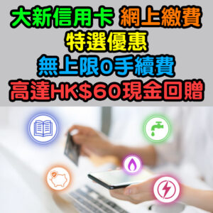 【大新信用卡網上繳費特選優惠】無上限0手續費!高達HK$60現金回贈!
