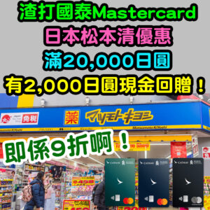 【渣打國泰Mastercard日本松本清優惠】滿20,000日圓,有2,000日圓現金回贈!即係9折啊!