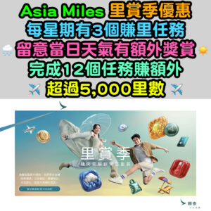【國泰「里賞季」活動】每星期有3個賺里任務!留意當日天氣有額外獎賞!完成任務賺超過10,000額外里數!