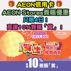 【AEON信用卡AEON Stores簽賬優惠】只限4日!高達10%簽賬「賞」!