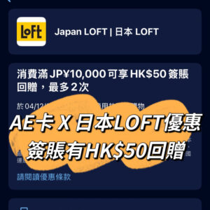 【AE卡日本LOFT優惠】買JP¥10,000有HK$50回贈!記得要登記咗先!優惠可以用2次!