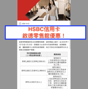 【HSBC信用卡啟德零售館優惠】每日可享合共高達HK$920!
