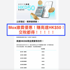【Mox繳費優惠】特選客戶優惠!繳付賬單賺合共$50回贈!約5次2.5%及1次12.5%回贈!