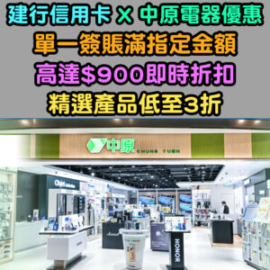 【建行(亞洲)信用卡 x 中原電器優惠】單一簽賬高達$900即時折扣 + 精選產品低至3折!