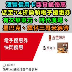 【滙豐信用卡獎賞錢優惠】低至74折換領電子優惠券!