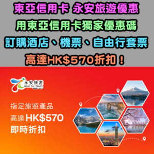 【東亞信用卡X永安旅遊】訂酒店、機票、自由行套票高達HK$570折扣!