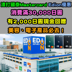 【Mastercard Edion優惠】買滿30,000日圓,有2,000日圓現金回贈!