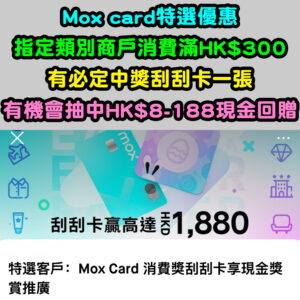Mox card特選優惠 記得check下Mox有無中特選!買野有刮刮卡啊!仲要必中獎,超正!由即日起至5月3 …