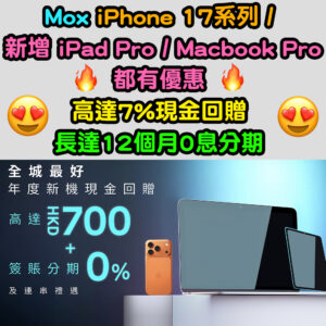 Mox iPhone 17系列 / iPad Pro / Macbook Pro 年度新機出咗啦,宜家連 iP …
