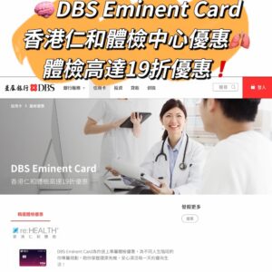 【DBS Eminent Card香港仁和體檢中心優惠】體檢高達19折優惠!