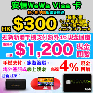 安信WeWa Visa卡 WeWa Visa卡小斯優惠,唔洗簽都有HK$300!喺2025年10月21日至31 …